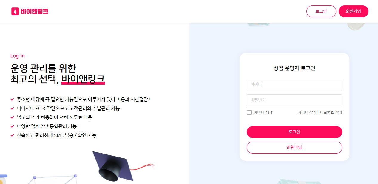 바이앤링크는 입점 업체에게 미니 쇼핑몰을 제공하고 결제 링크를 생성하여 SNS 등 다양한 채널에서 상품을 판매할 수 있도록 지원하는 플랫폼 서비스입니다.