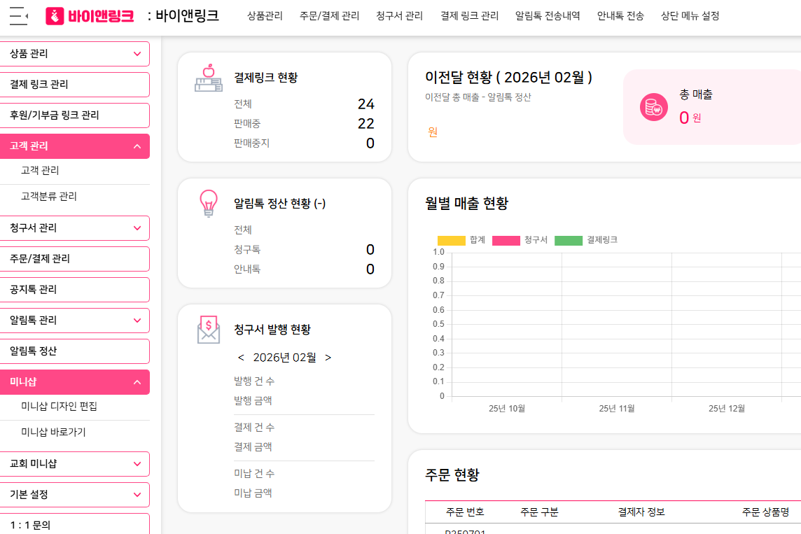 - 입점 업체가 별도의 쇼핑몰 구축 없이 판매할 수 있는 결제 링크 기반 판매 플랫폼 구축
